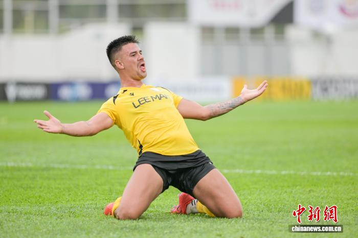 图为理文队球员韦利安在胜利后庆祝。中新网记者 陈永诺 摄