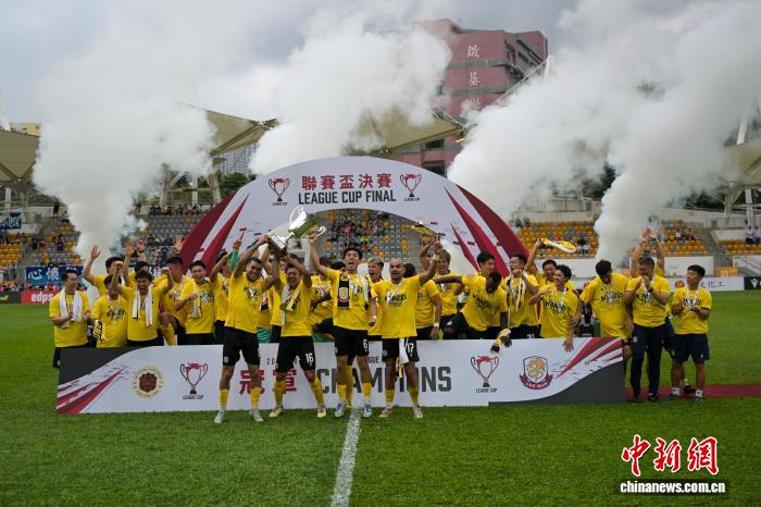 4月7日,2025-26年度中国香港足球总会联赛杯决赛在香港旺角大球场上演,理文队以2:1击败杰志队,夺得冠军。理文队成立于2017年,是香港足坛劲旅。图为理文队球员胡晋铭(黄衣)与杰志队球员利安度拼抢。中新网记者 陈永诺 摄 图为理文队球员艾华顿(黄衣)与杰志队球员拼抢。中新网记者 陈永诺 摄 图为理文队球员与杰志队球员明加索夫(蓝衣7号)等在比赛中。中新...